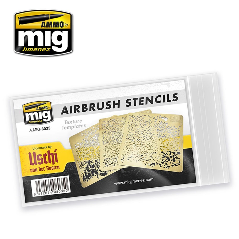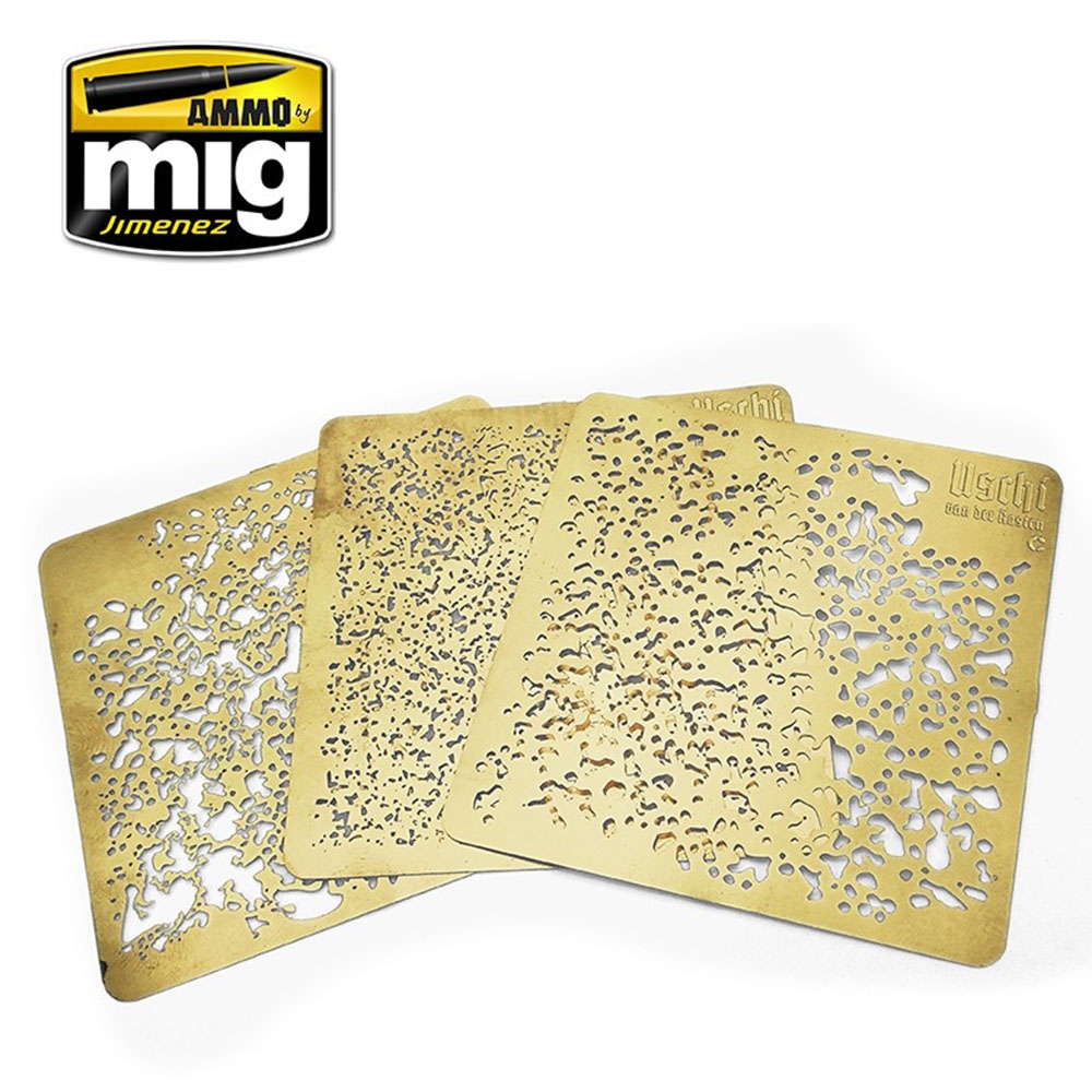 Ensemble de 3 pochoirs photogravés pour aérographe - 6x6cm - AMMO 8035