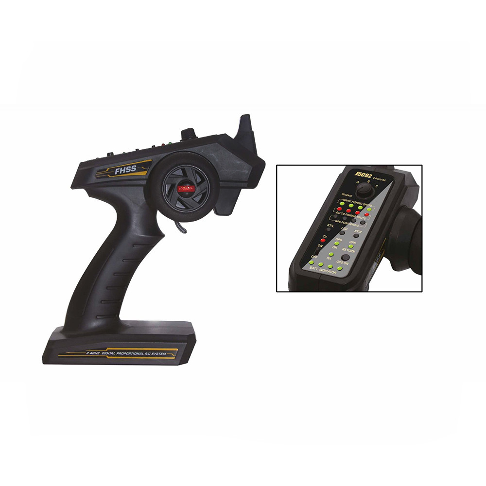 - Radio 2,4 GHz : contrôle précis et indicateur de batterie sur l’émetteur