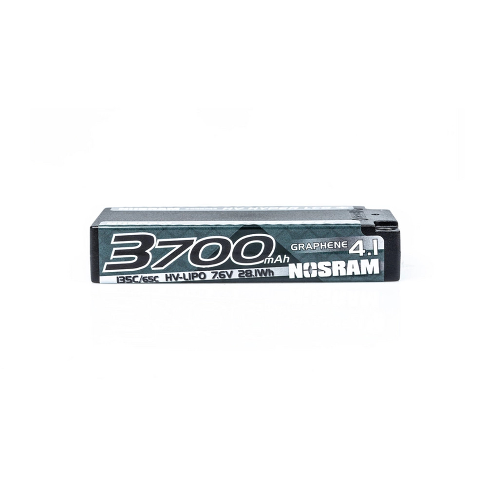Un accu LiPo 2S HV LCG Stock Shorty Graphene 4.1 de 7.6V et 3700mAh de chez NOSRAM. Réf : 999743