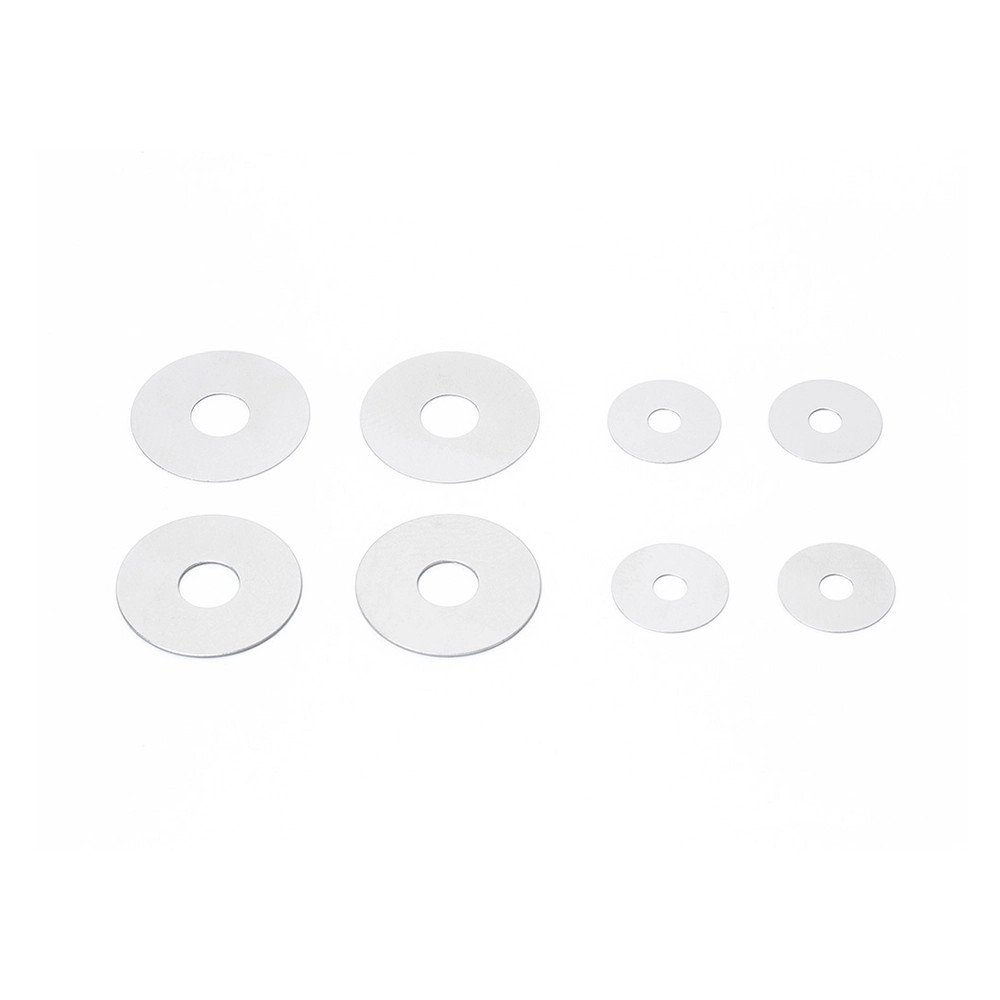 Le kit comprend 2 cales de 5 x 15 mm (d’épaisseurs 0,1 mm et 0,3 mm) ainsi que 4 cales de 2,6 x 9,5 mm, chacune d’une épaisseur de 0,1 mm.