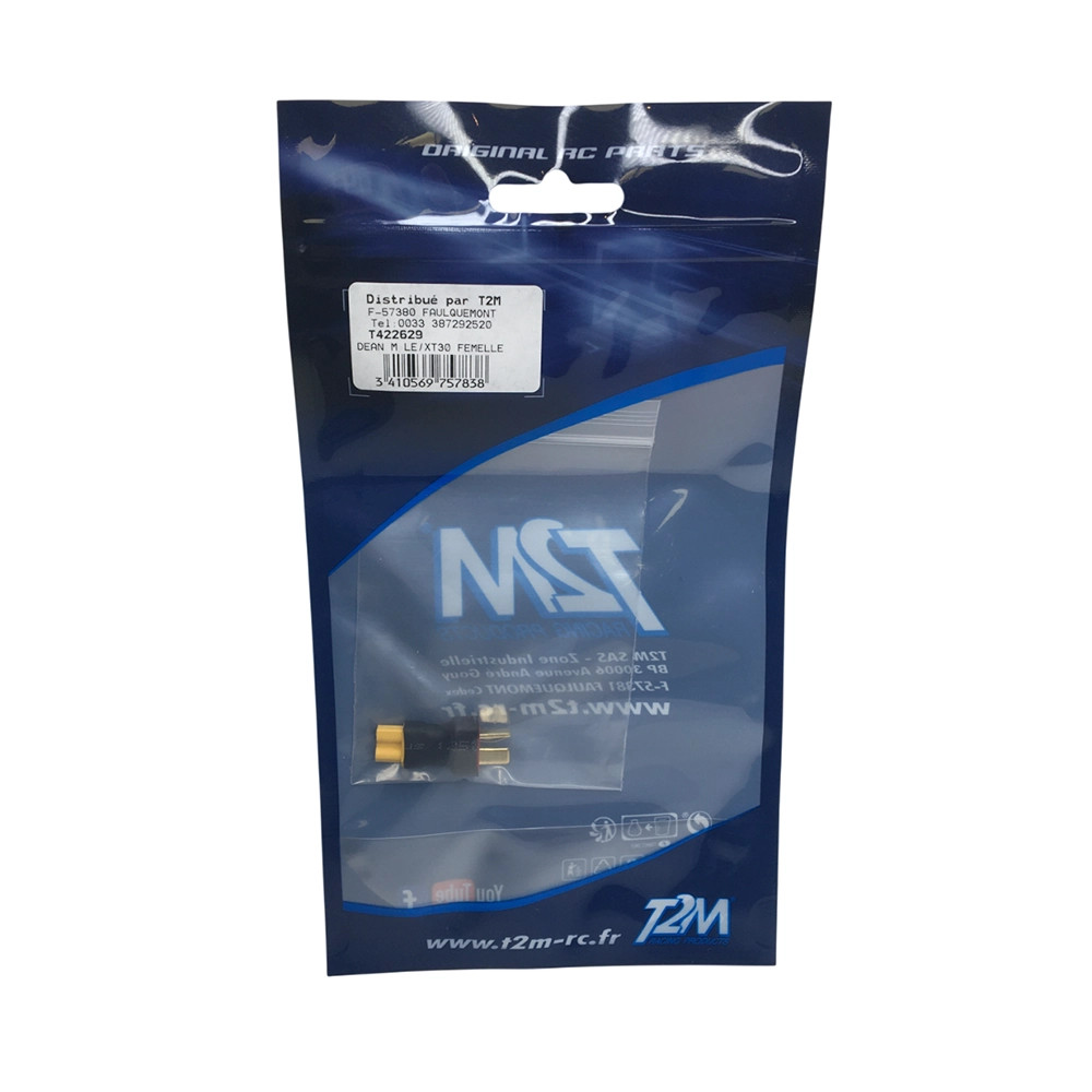 Un adaptateur Dean mâle vers XT30 femelle de chez T2M. Réf : T422629
