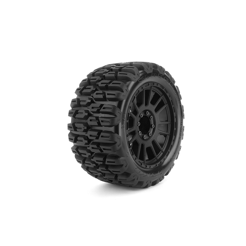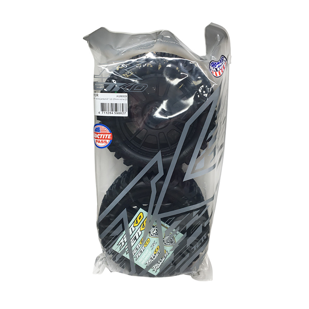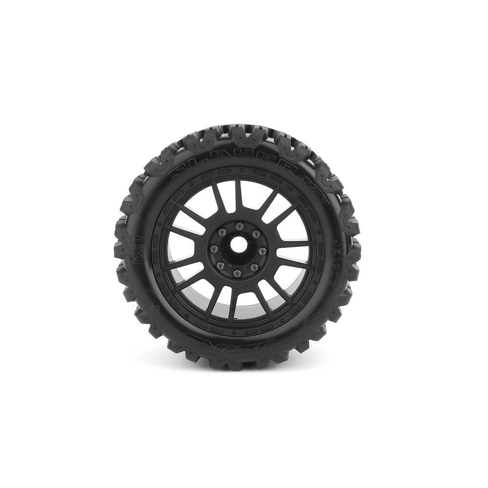 Une paire de roues avec pneus "EX MT Slayer" sur jantes noirs Black Claw de JETKO. Réf : JK1903CB