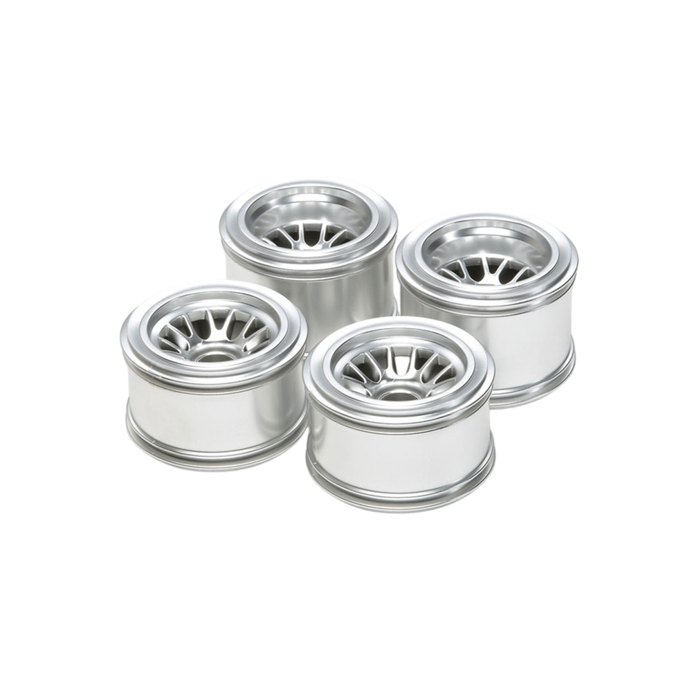 Un lot de jantes métalliques finition mate pour châssis F104 de chez TAMIYA. Réf : 54201