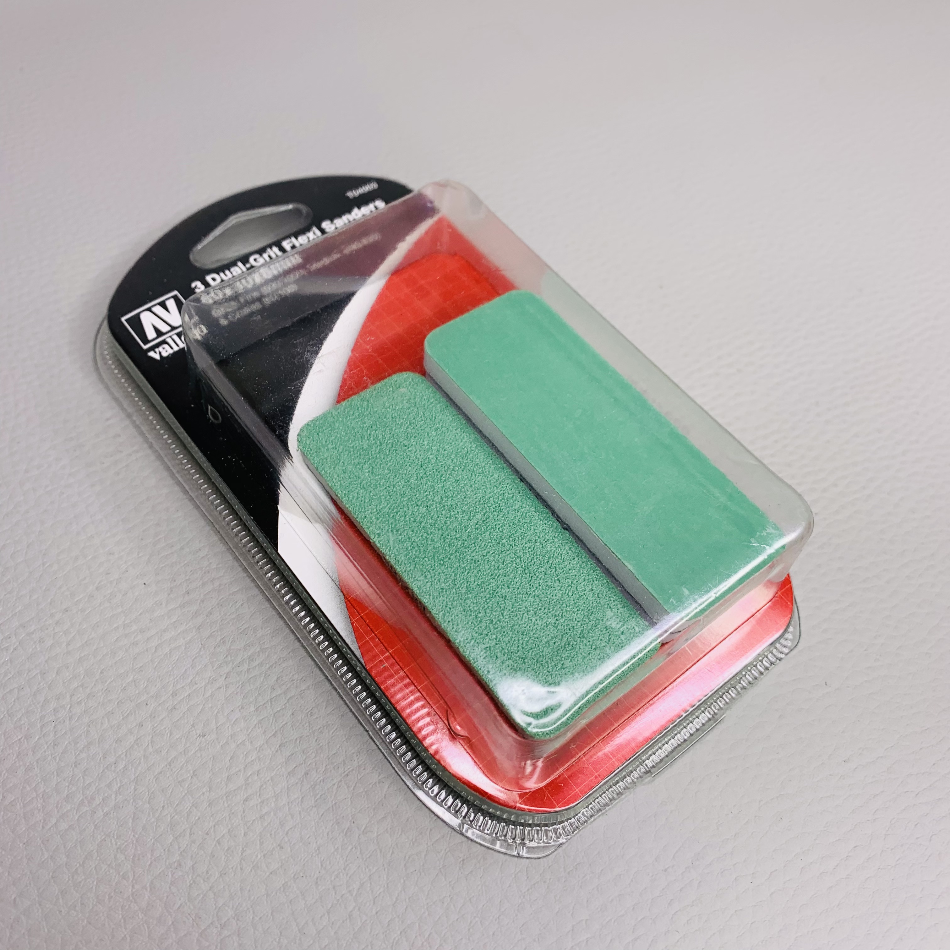 Lot de 3 papiers abrasifs souples, double grain (80x30x6 mm) - VALLEJO T04003