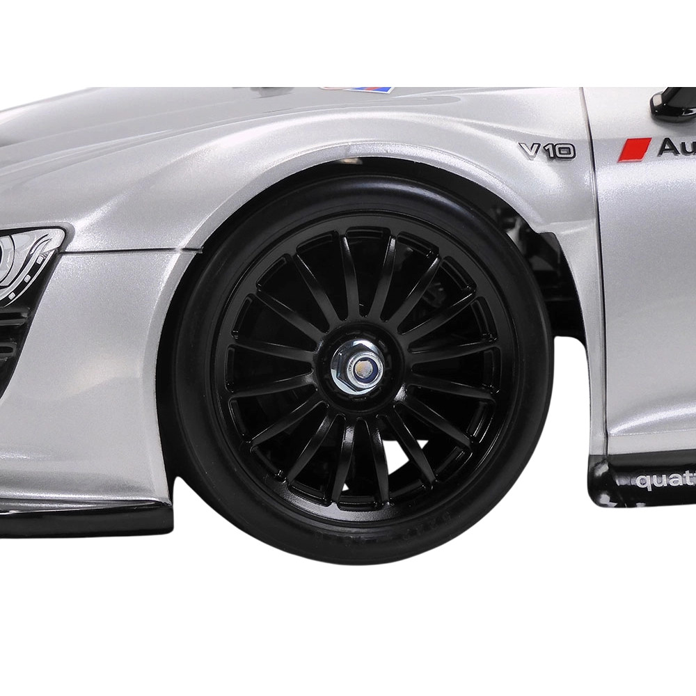 Cette Audi R8 LMS de 2008 est une réplique détaillée à l'échelle 1/10 de la célèbre voiture de course, de chez TAMIYA. Réf : 47517