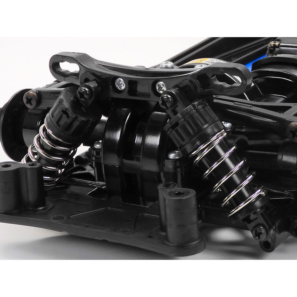 Il repose sur la version à empattement court (251 mm) du châssis TT-02, équipée de jantes noires et de pneus slicks haute performance.