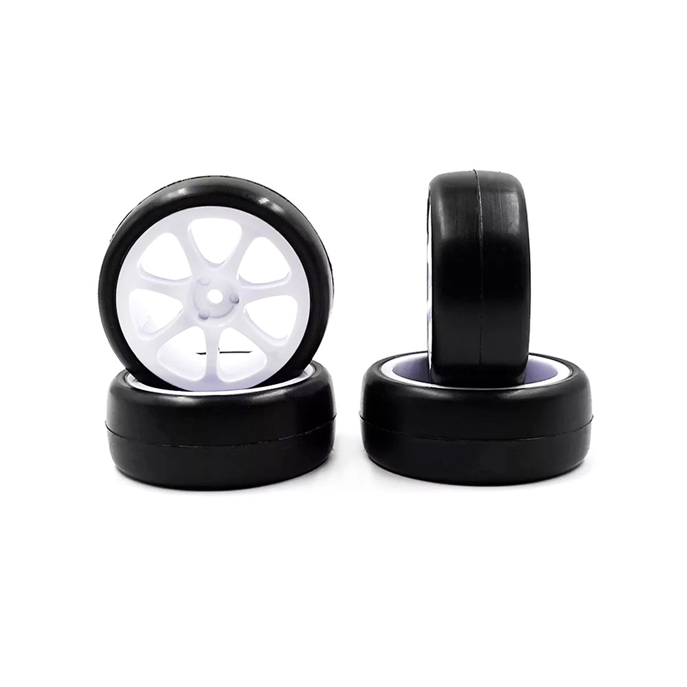 Lot de 4 pneus prémontés et collés, conçus pour la course sur moquette de chez RUSH. Réf : RU0633a