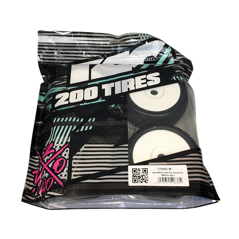 4 Roues montées collées SOFT (pneu TZO 400 / jante blanche) - TZO TZ400S-W - 1/8