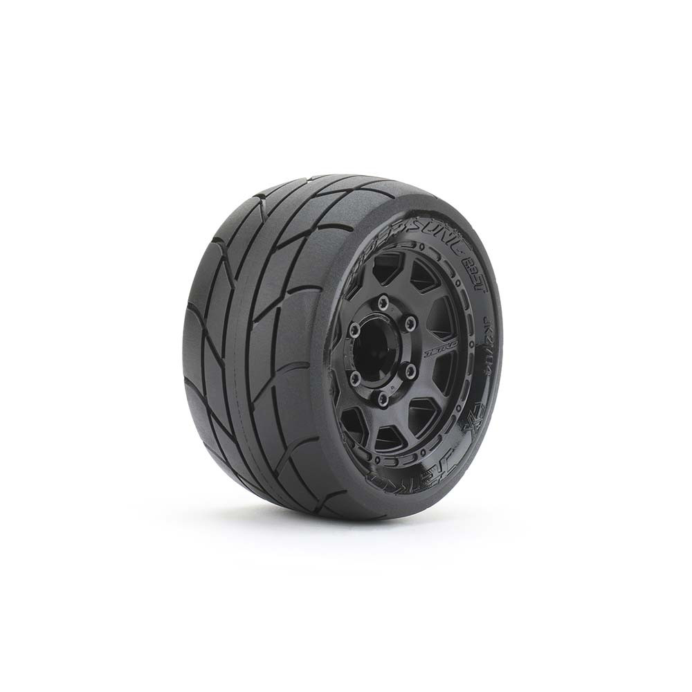 Une paire de roues avec pneus "EX ST Super Sonic" sur jantes noirs Hex.12, 14 ou 17mm de JETKO. Réf : JK2704CB