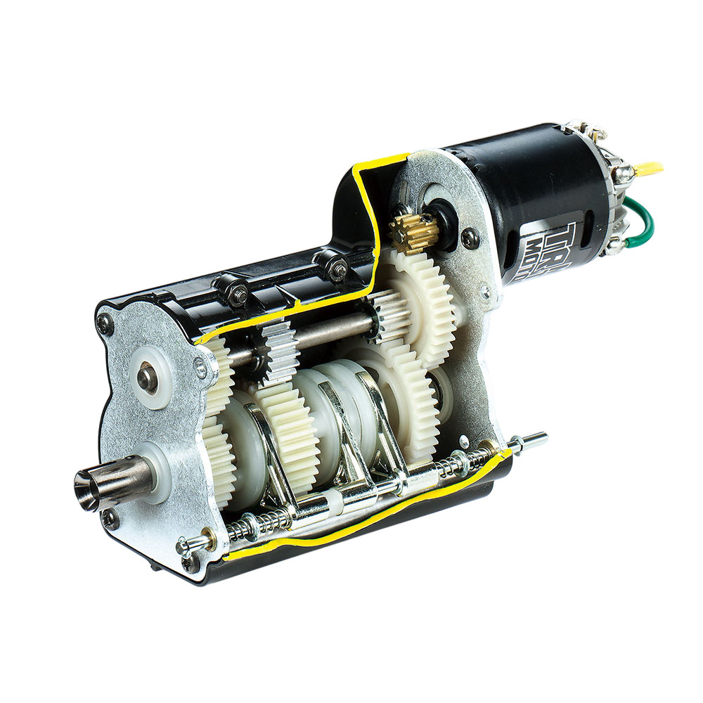 - Transmission mécanique 3 vitesses commandable via émetteur 4 voies (non inclus)